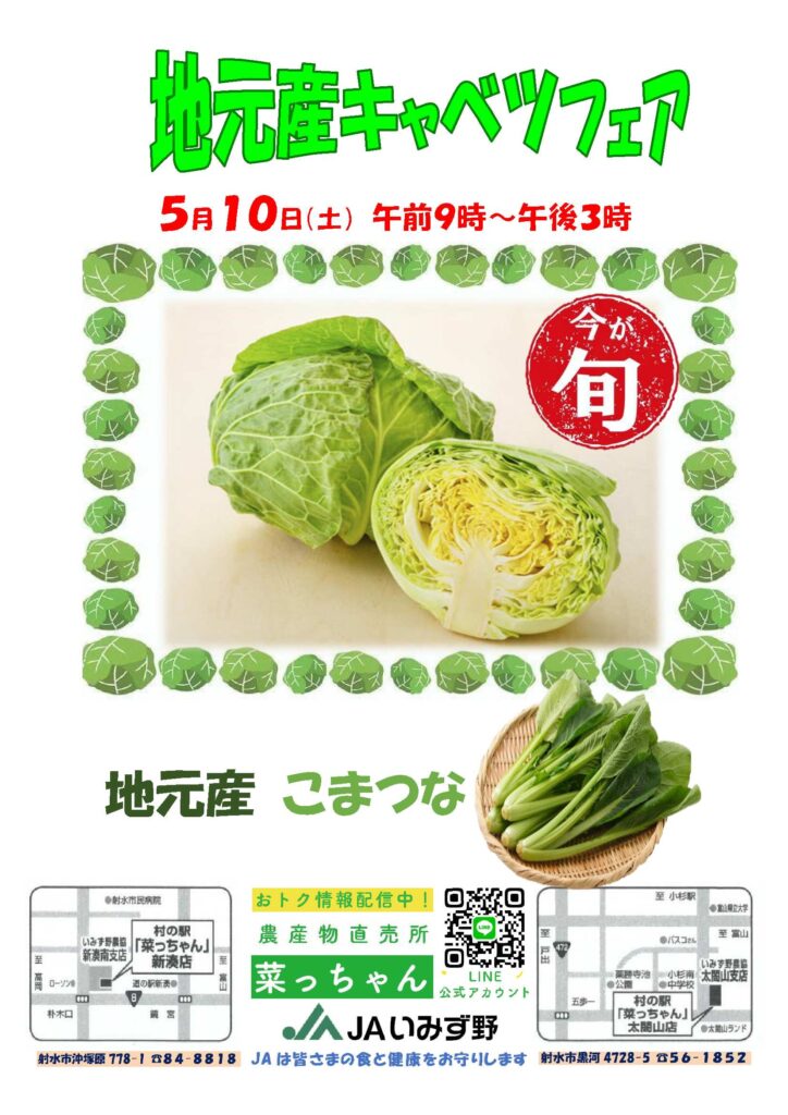 村の駅 菜っちゃんで「地元産キャベツフェア」を5月10日(土)に開催