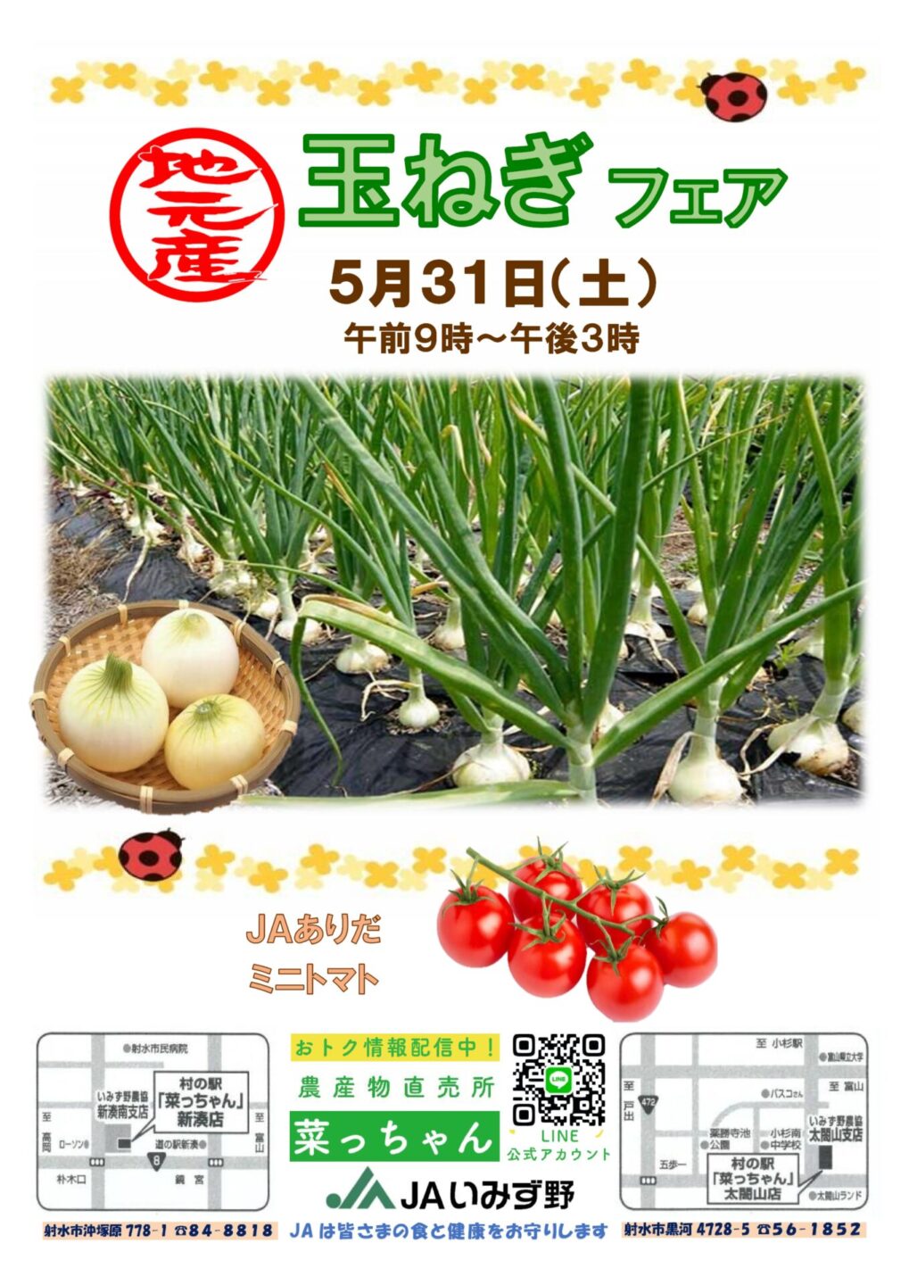 村の駅 菜っちゃんで「地元産玉ねぎフェア」を5月31日(土)に開催