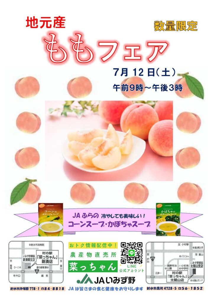 村の駅 菜っちゃんで「地元産ももフェア」を7月12日(土)に開催