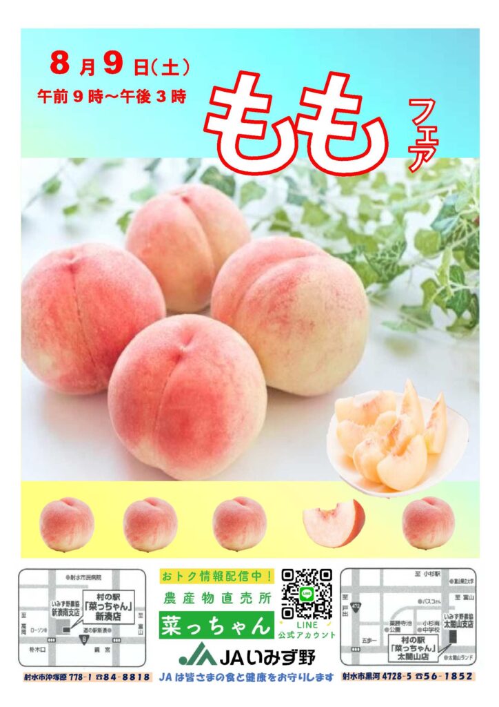 村の駅 菜っちゃんで「ももフェア」を8月9日(土)に開催