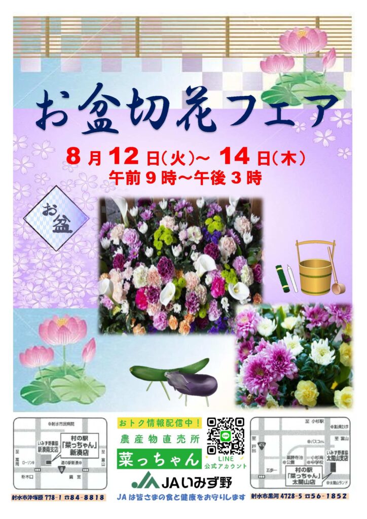 菜っちゃんにて「お盆用切花フェア」を8月12日(火)~14日(木)に開催