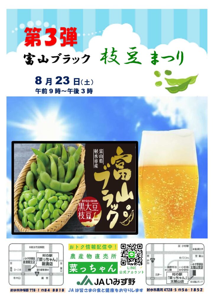 村の駅 菜っちゃんで「富山ブラック枝豆まつり」を8月23日(土)に開催