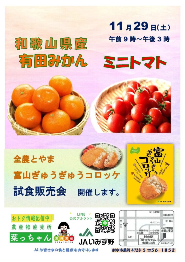村の駅 菜っちゃんで「和歌山県産有田みかん・ミニトマトフェア」を11月29日(土)に開催