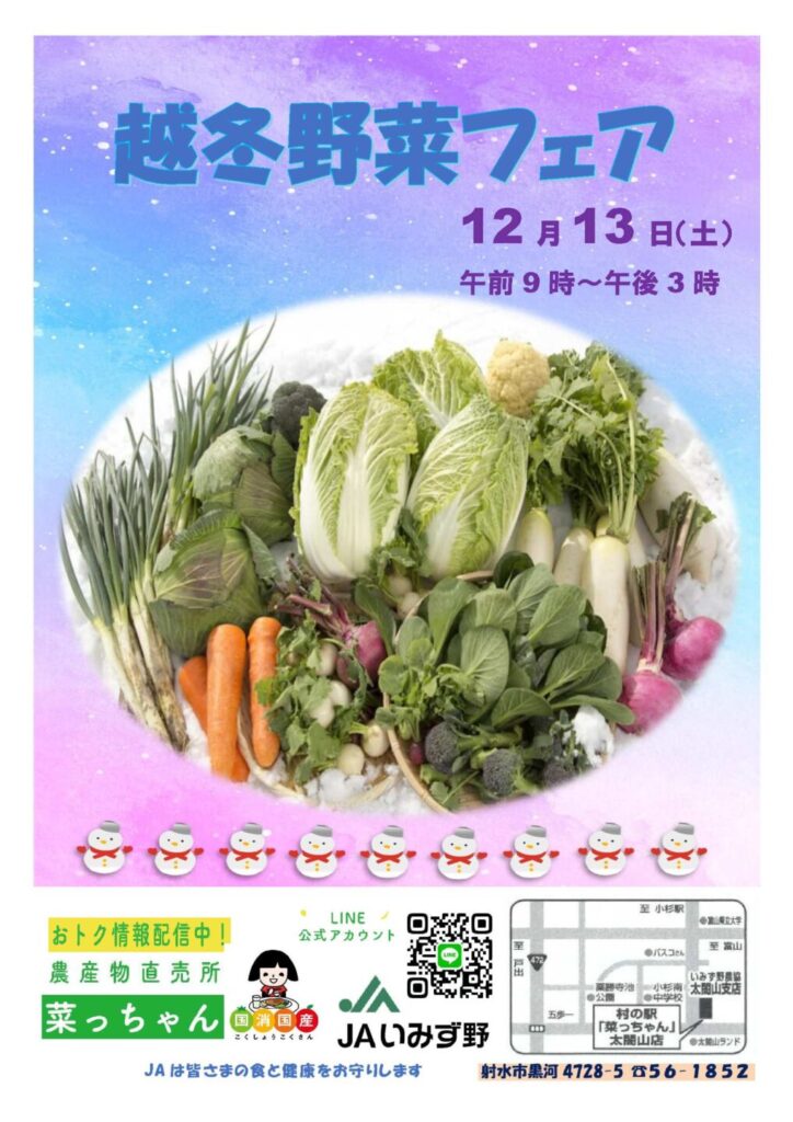 村の駅 菜っちゃんで「越冬野菜フェア」を12月13日(土)に開催