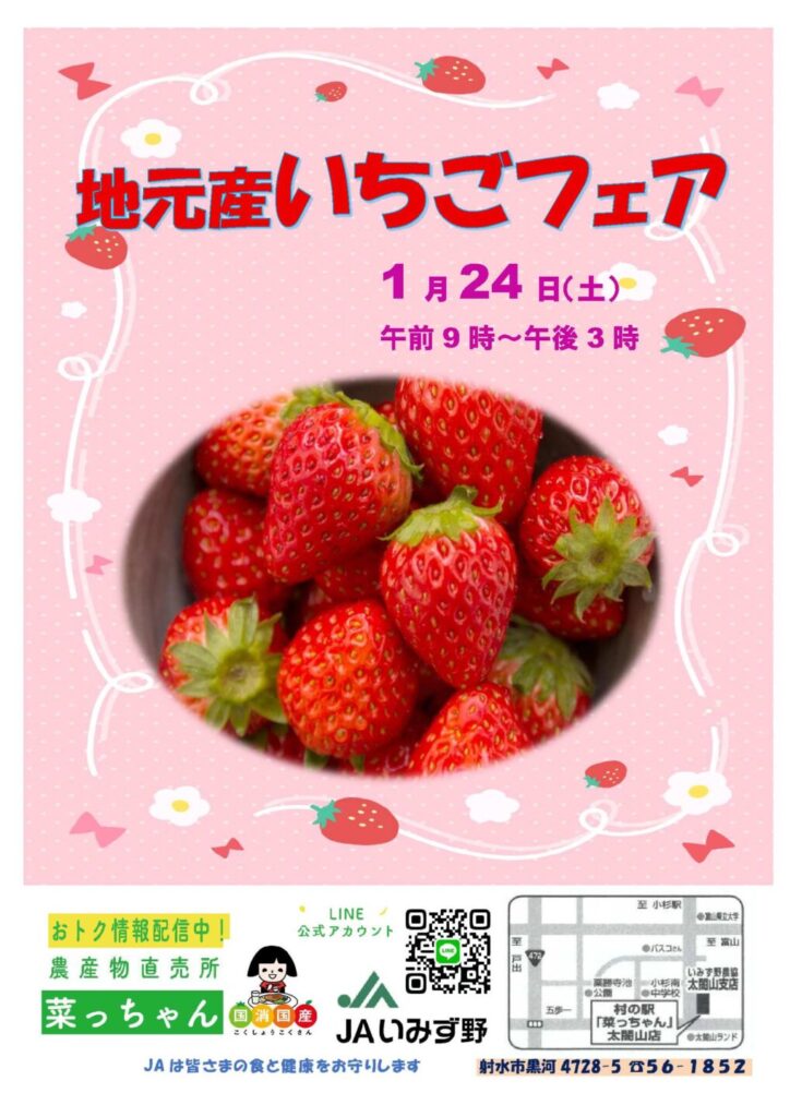 村の駅 菜っちゃんで「地元産いちごフェア🍓」を1月24日(土)に開催