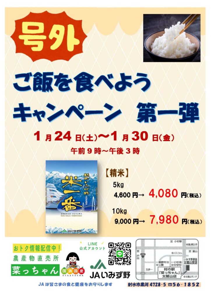 期間限定!1/24(土)~1/30(金)村の駅 菜っちゃんで「ご飯を食べようキャンペーン第1弾」を開催