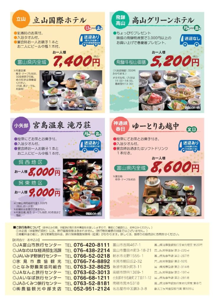 「JAおすすめ日帰りプラン♪」申込は令和8年9月30日(水)まで ※15名様以上のプランです