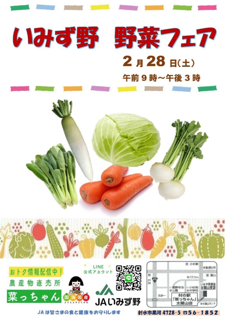 村の駅 菜っちゃんで「いみず野 野菜フェア」を2月28日(土)に開催