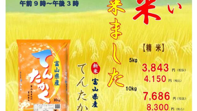 菜っちゃんにて「富山県産新米てんたかくフェア」を8月30日(土)~9月5日(金)に開催