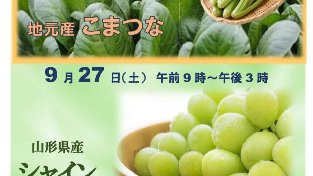 村の駅 菜っちゃんで「地元産こまつな・山形県産シャインマスカットフェア」を9月27日(土)に開催