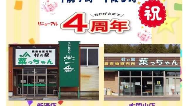 村の駅 菜っちゃんで「菜っちゃんリニューアル4周年フェア」を4月5日(土)に開催