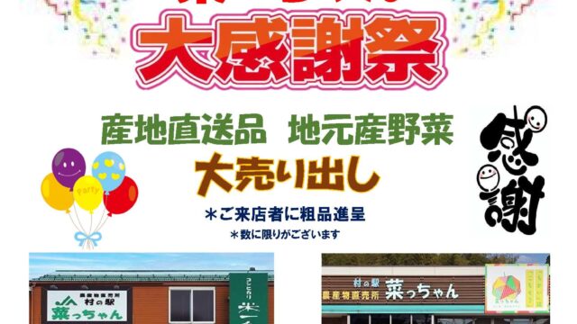 村の駅 菜っちゃんで「大感謝祭」を5月24日(土)に開催 ご来店者様へ粗品進呈